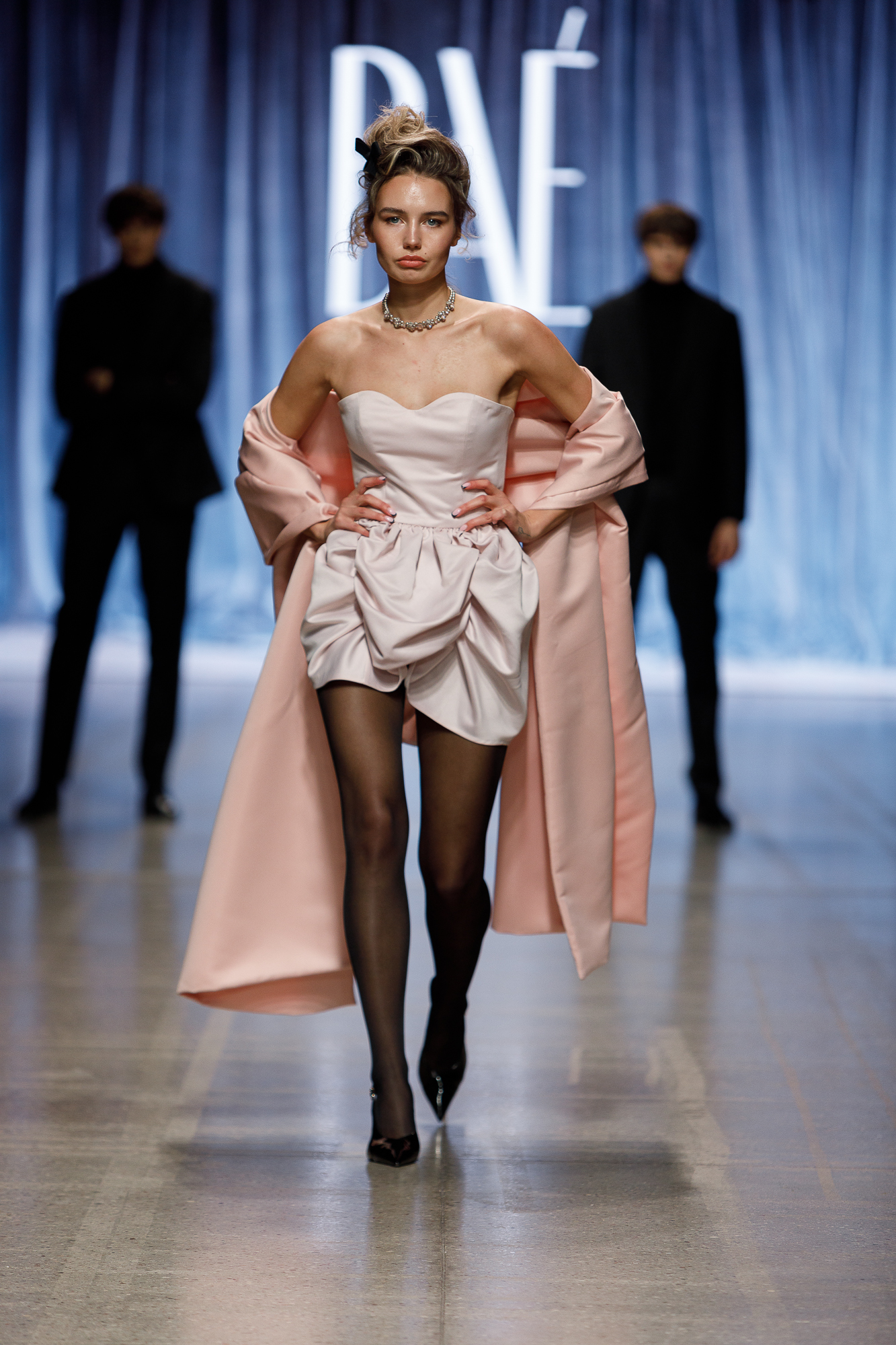 BAE by Katya Shehurina — латвийская марка, которая уже известна своими кросс-форматами и смелыми экспериментами. На RFW бренд вновь оказался в фокусе, демонстрируя коллаборации и современную спортивную эстетику. В этой коллекции ощущается решительный характер: городская, немного футуристичная мода, спортивные элементы, лаконичность форм, но с узнаваемым брендовым почерком. Это словно финальный аккорд вечера — лёгкий, динамичный и настроенный на молодую аудиторию.