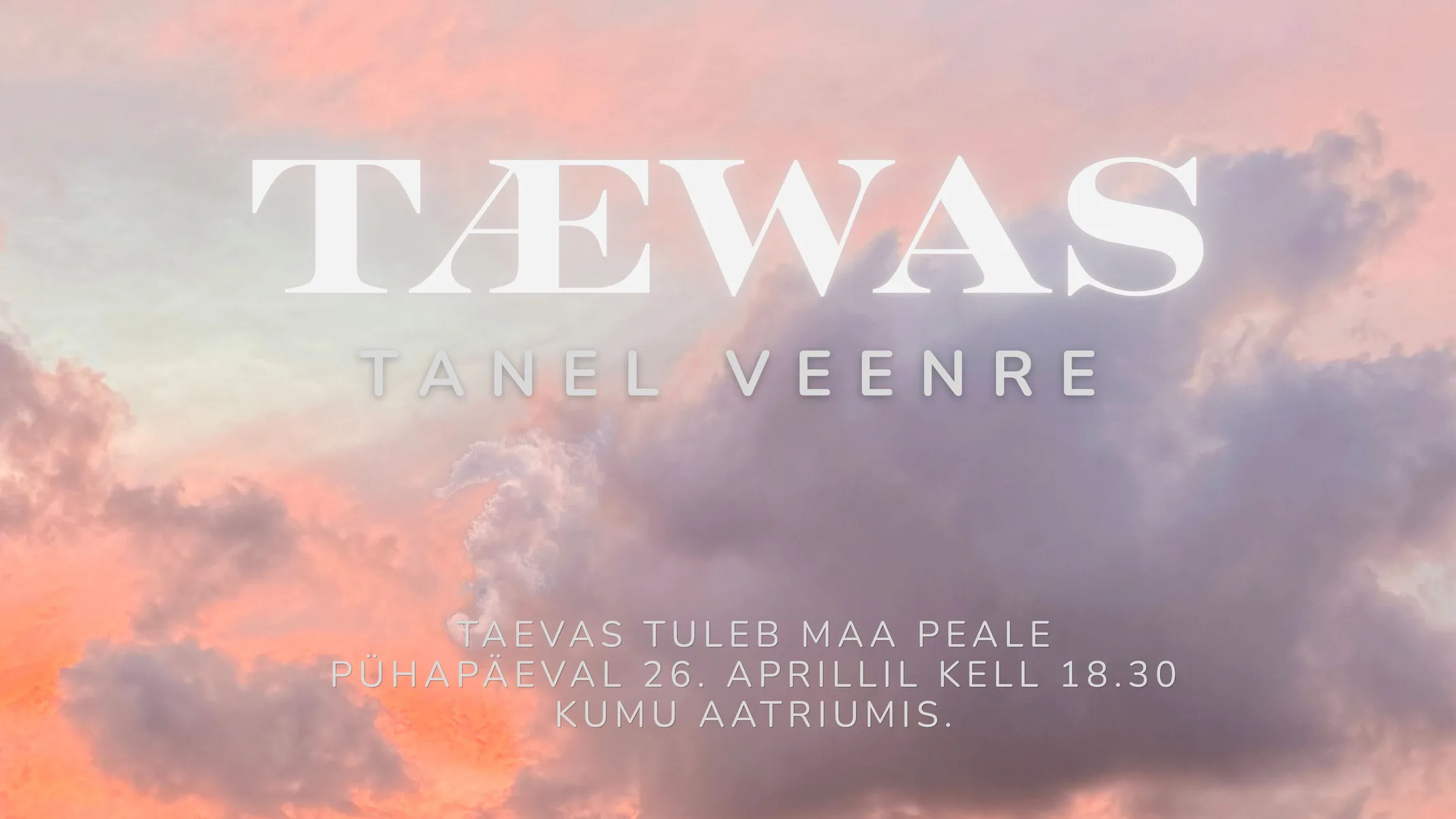 26. aprillil esitleb Tanel Veenre Kumu aatriumis oma värsket seeriat „Tæwas“. Tegemist on kihilise elamusega – performatiivse sündmuse raames näevad ilmavalgust lausa viis eriilmelist ehte- ja moekollektsiooni. Tanelile omaselt ei tule kollektsioon esitlusele tavapärases catwalk’i formaadis – see on muusika, ruumi ja liikumise sünergia. Kumu Kadrioru pargi poolsed uksed avatakse kell 18.30, etendus toimub kell 19.00.